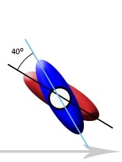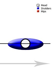 The diagram below compares a Tour Professional, who hammers his tee shots 350 yards, with the regular amateur who lags about 150 yards behind that. The view is from above the golfer looking down on his head and shoulders. Shoulders are in blue, hips in red. Now, take careful note of the angles.