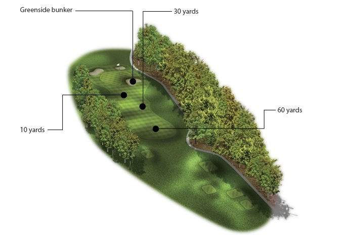 You should add the knock-down, lengthy pitch (in the 30 to 50 yards distance) to your armoury. Yes you could fly the ball all the way with a high, shorter swing Sand Wedge. But if you have the green to work with why not play a knock down 9-Iron, using just your arms, that lands near the front of the green and runs up to the flag. Again this is a low risk shot that will deliver more consistent results for you.